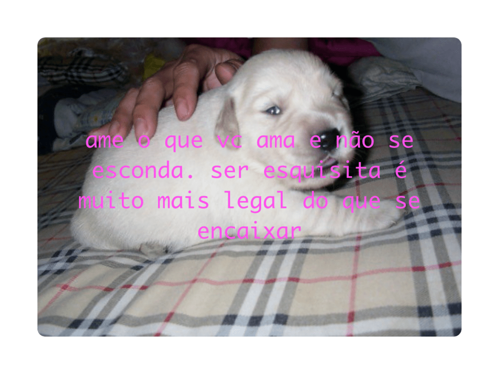 faça tudo no seu próprio tempo e tenha autocompaixão – não foque muito no que você imagina que o os outros estão pensando de você. se a gente se deixar levar por essas noias, ficamos malucas mesmo. tudo passa ❤