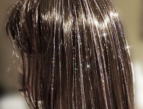 dressa: seria o cabelo que já tenho mas com aqueles fios holográficos coloridos de plástico… acho que é tinsel o nome! eu comprei uma vez mas dá muito trabalho de colocar sozinha aí não curti muito…
