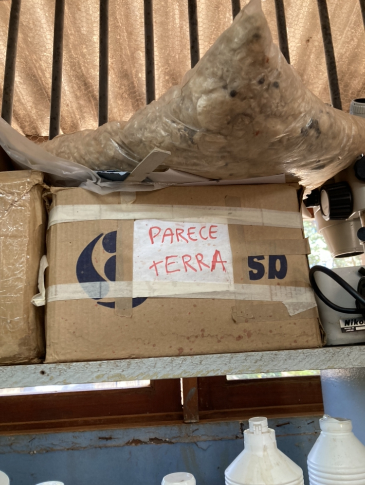essa caixa misteriosa que “parece terra” ficava na sala da matéria “materiais em arte 1” eu passei muitas aulas tentando imaginar oq tinha lá dentro mas de um semestre pra outro ela sumiu e agora nunca vou saber