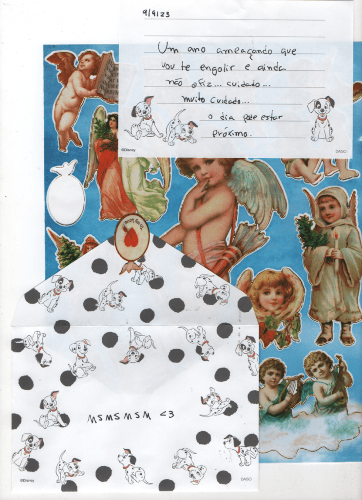 meu diário visual esse mês gira em torno dos bilhetinhos de aniversário que ganhei da minha vó. amo o jeitinho que ela escreve e como decorava todos com uma figurinha da hello kitty. guardo tudo em um envelope que também tem outros envelopes, incluindo um que minha madrinha me deu, e quero ter tudo sempre comigo. amo as palavrinhas que minha ba escreveu e quero todas sempre dentro de mim e das minhas lembranças. todos os detalhes são muito especiais incluindo como cortava todos em forma de coração.