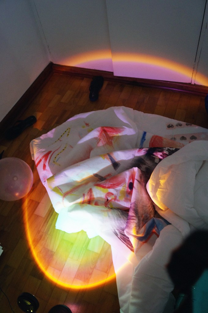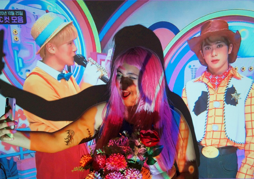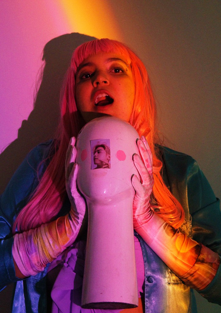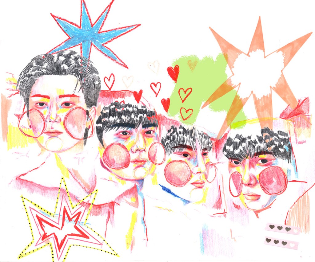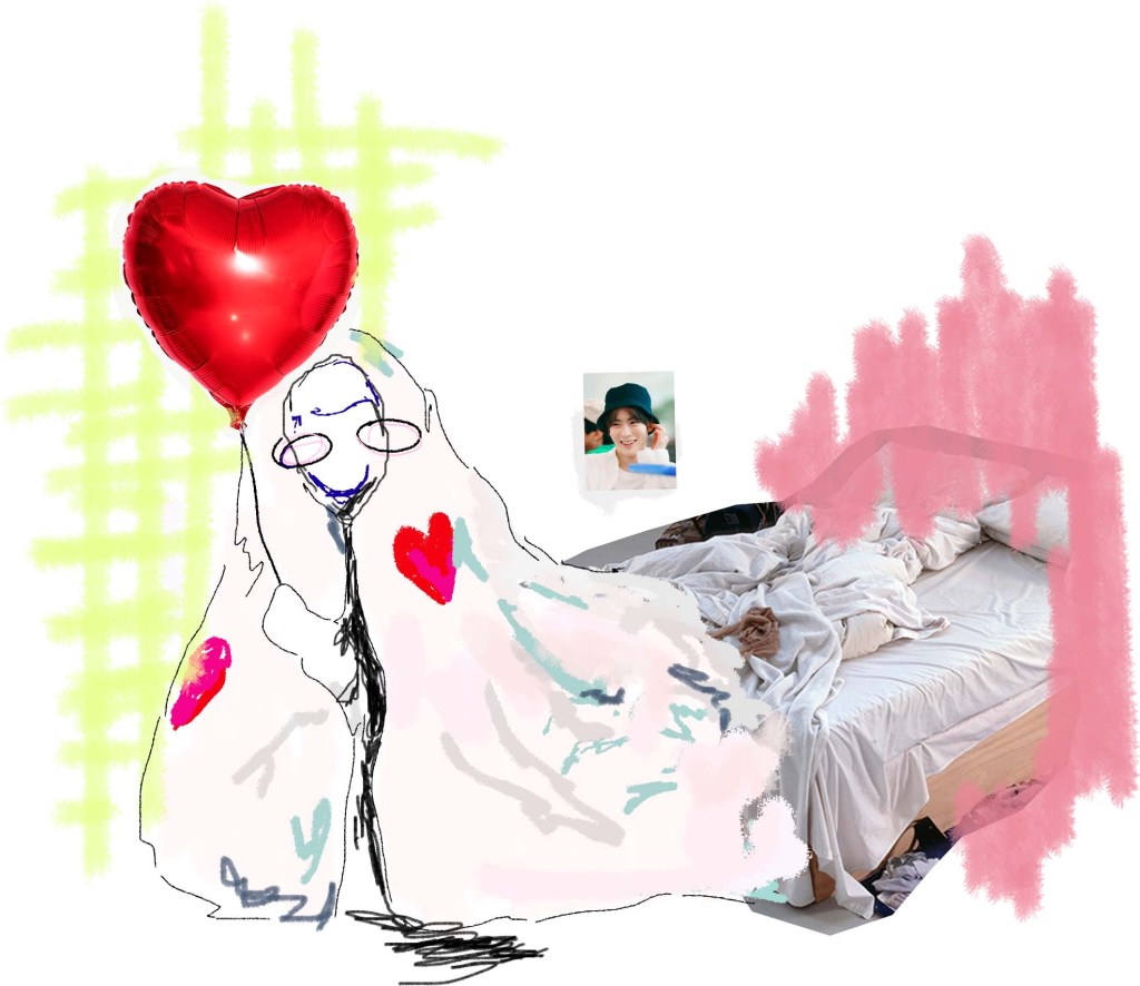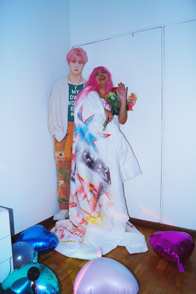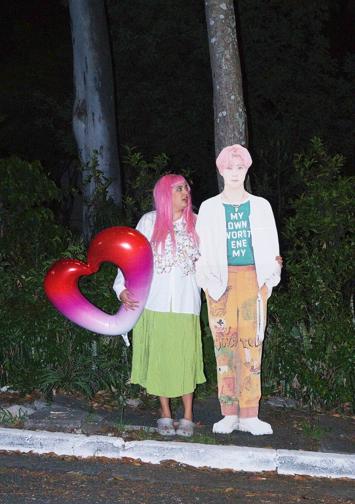Voltando ao editorial, com o tema geral da zine sendo amor, foi um pouco instintivo querer trazer algo dos meus amores platônicos. Uma coisa sobre mim é que eu amo amar. Outra coisa é que a única coisa que eu lembro de ter feito minha vida inteira de forma consistente foi ser fã. goodnight tonight as well é sobre o conforto de uma relação entre fã e ídolo. É sobre os aspectos, sendo positivos ou negativos, que essa relação pode trazer, principalmente em um contexto de isolamento social como o que vivemos. É um delírio multicolorido de amor e devoção. O título é inspirado na música Knock On, do NCT 127, de onde o Jaehyun, idol que mais aparece nas fotos, é.