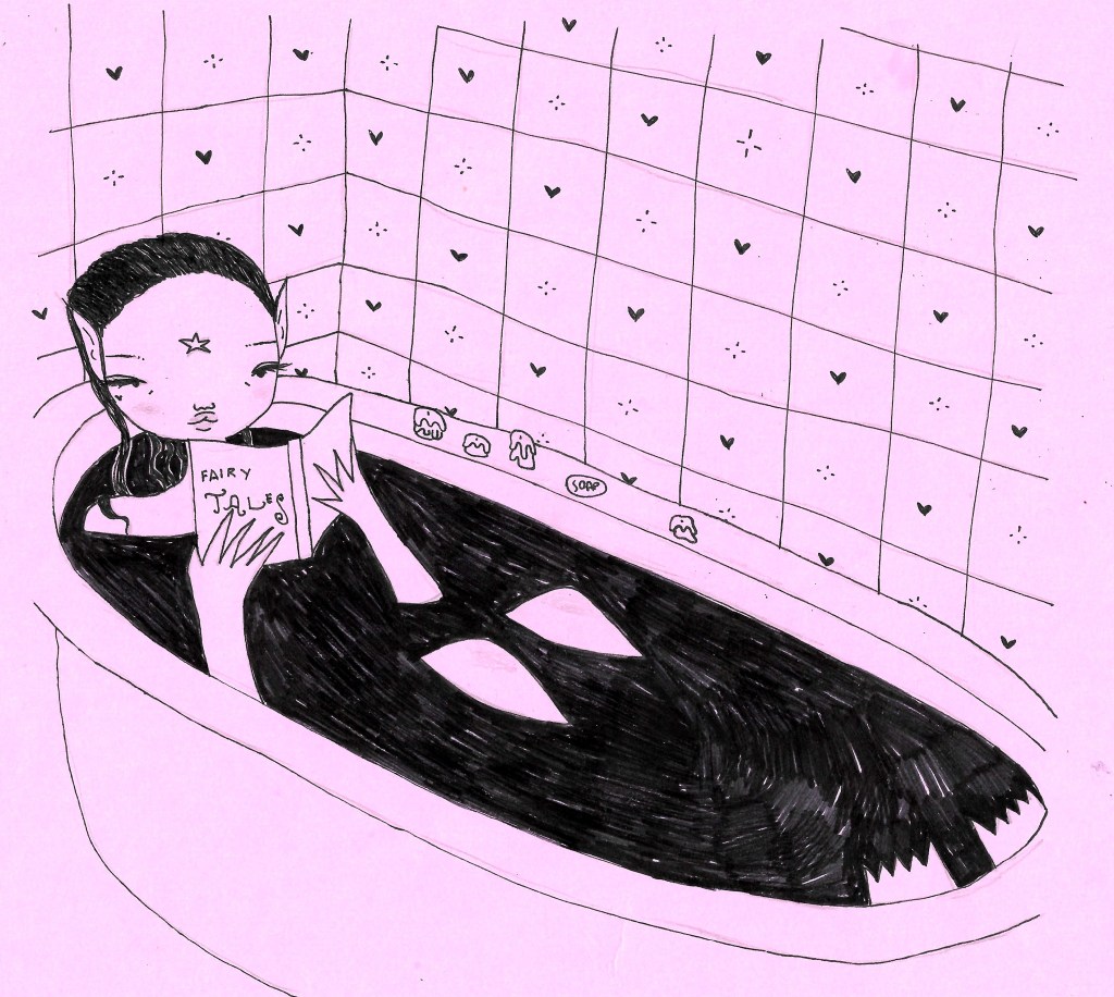 aquele dia no quarto vazio foi quando voltei a me sentir mais feliz – tinha um novo mundo para desbravar… o meu mundinho encantado que criei na minha cabeça, habitado por menininhas mágicas e melancólicas de bochechas coradas e batom borrado, que nasciam nos papéis cor de rosa, chorando, segurando espadas amassadas e nadando em gosma preta. era parecido com os livros que eu tinha começado a ler, e a trilha sonora era parecida demais com a da minha adolescência. me inspirava nos livros da melissa broder, nas músicas de wolf alice, hole, mazzy star, nas pinturas da vanessa stockard, e na vivianne westwood…