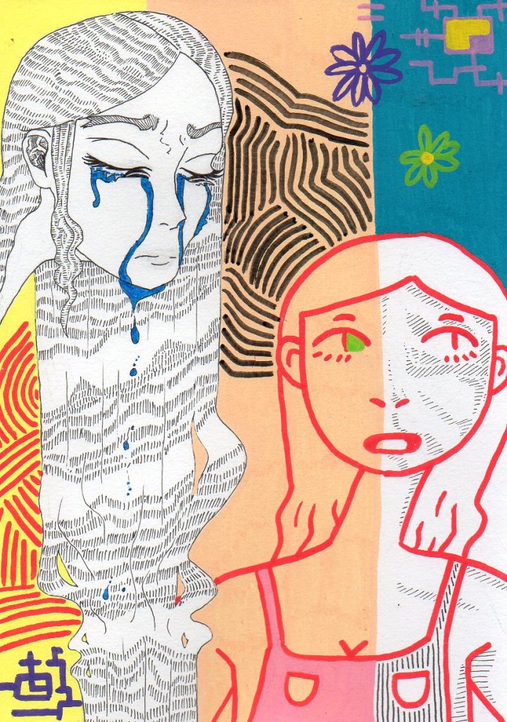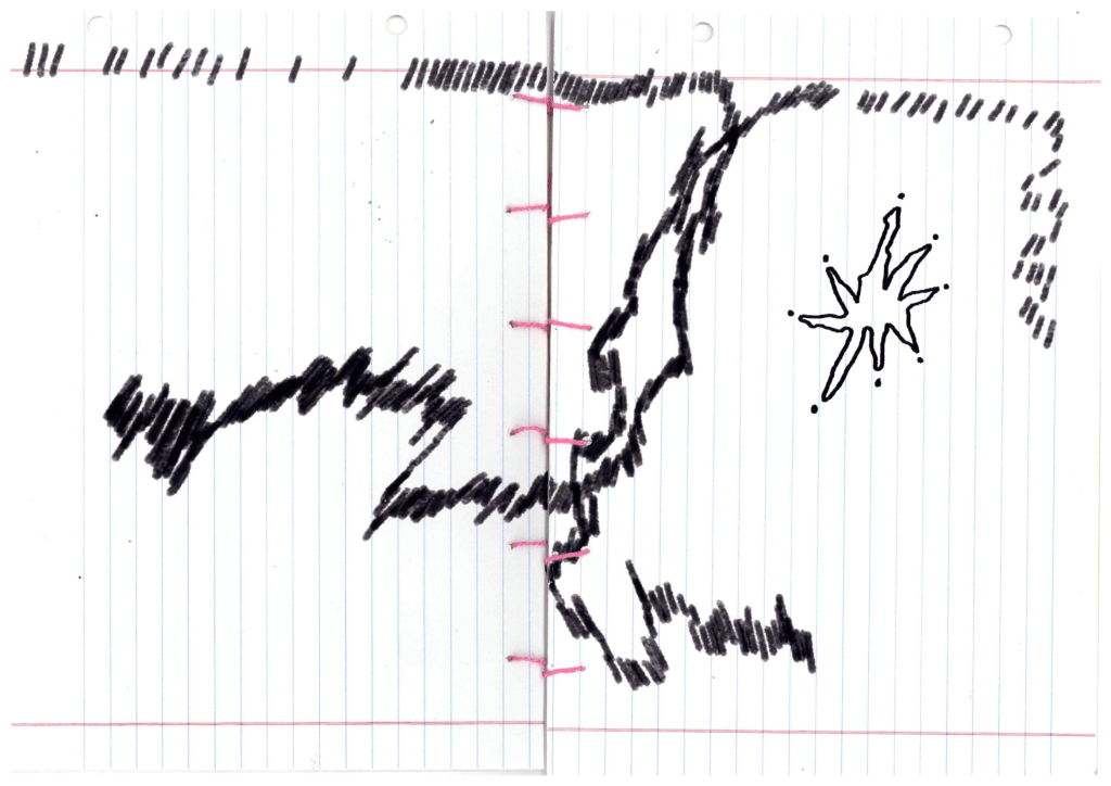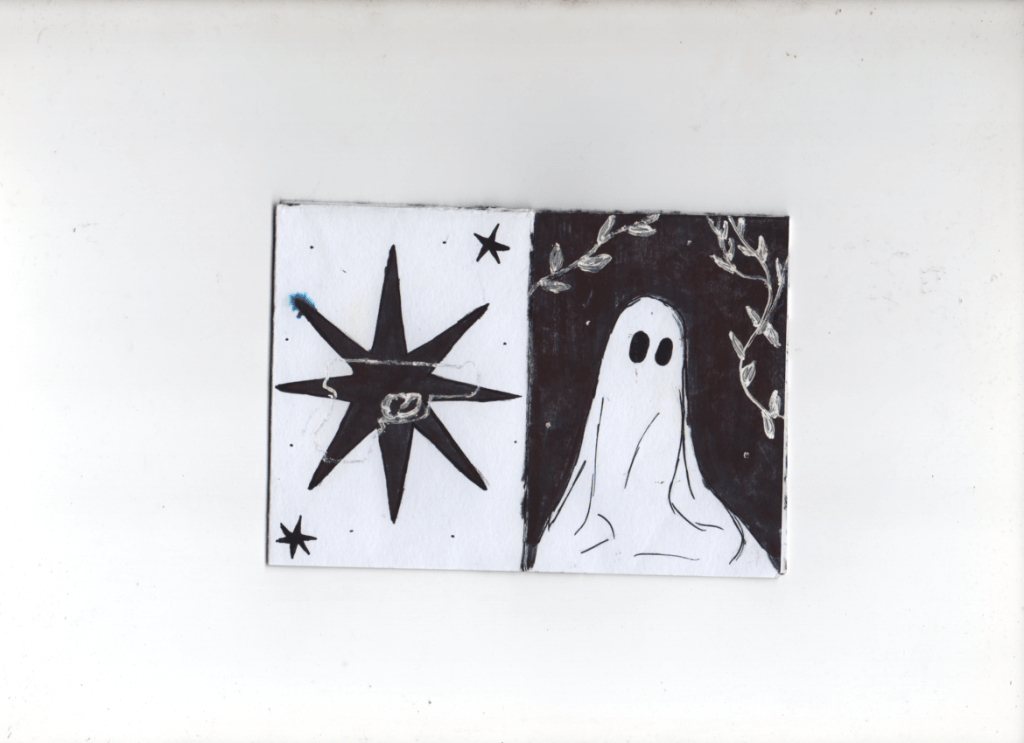 Zine, 8 páginas, caneta e tinta branca em papel A6