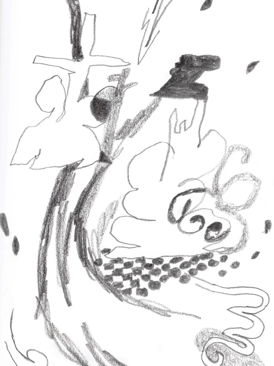foto de uma tela com um arquivo png, desenho em grafite, parte de uma pintura em giz pastel oleoso distorcida digitalmente,.