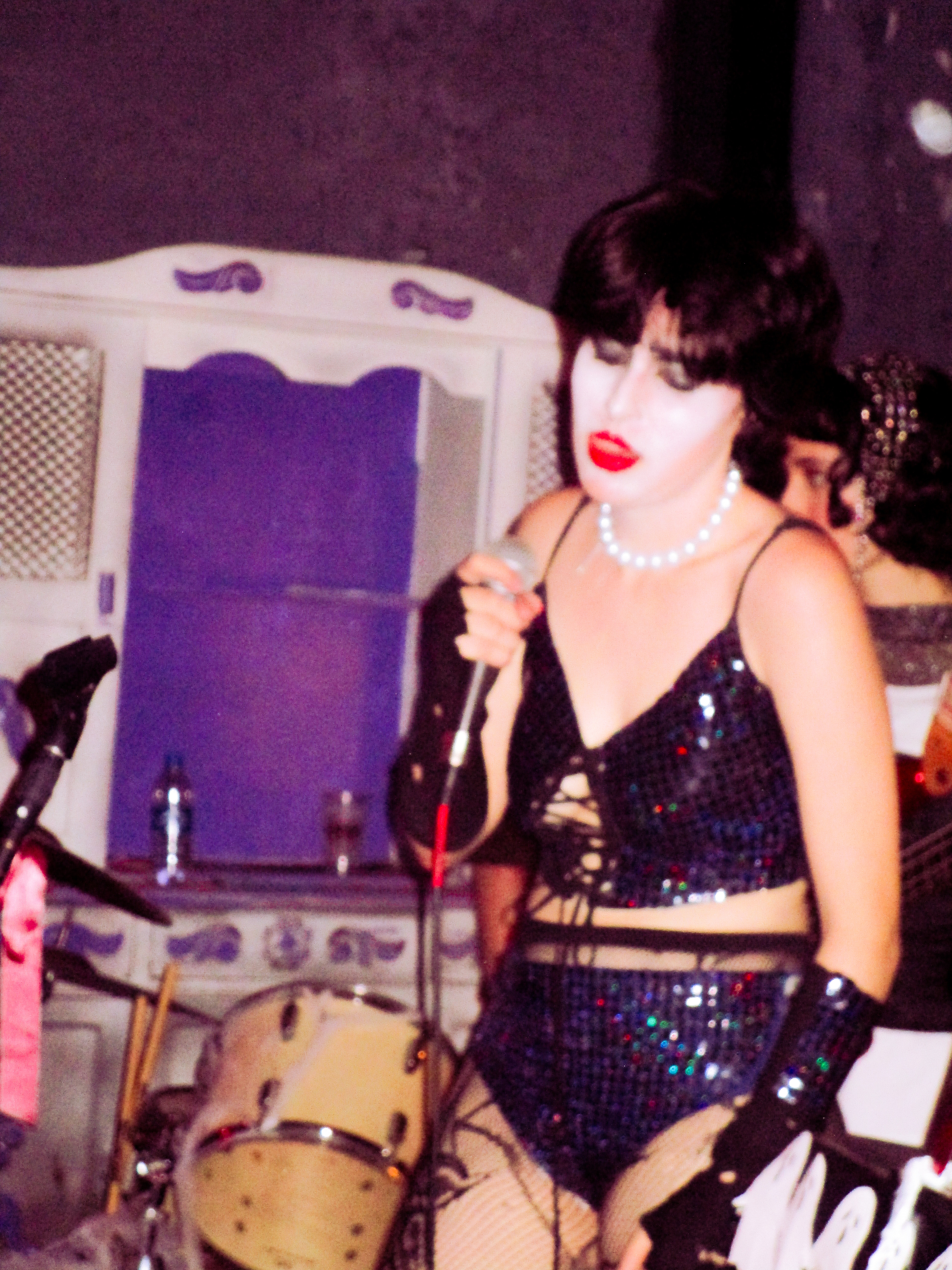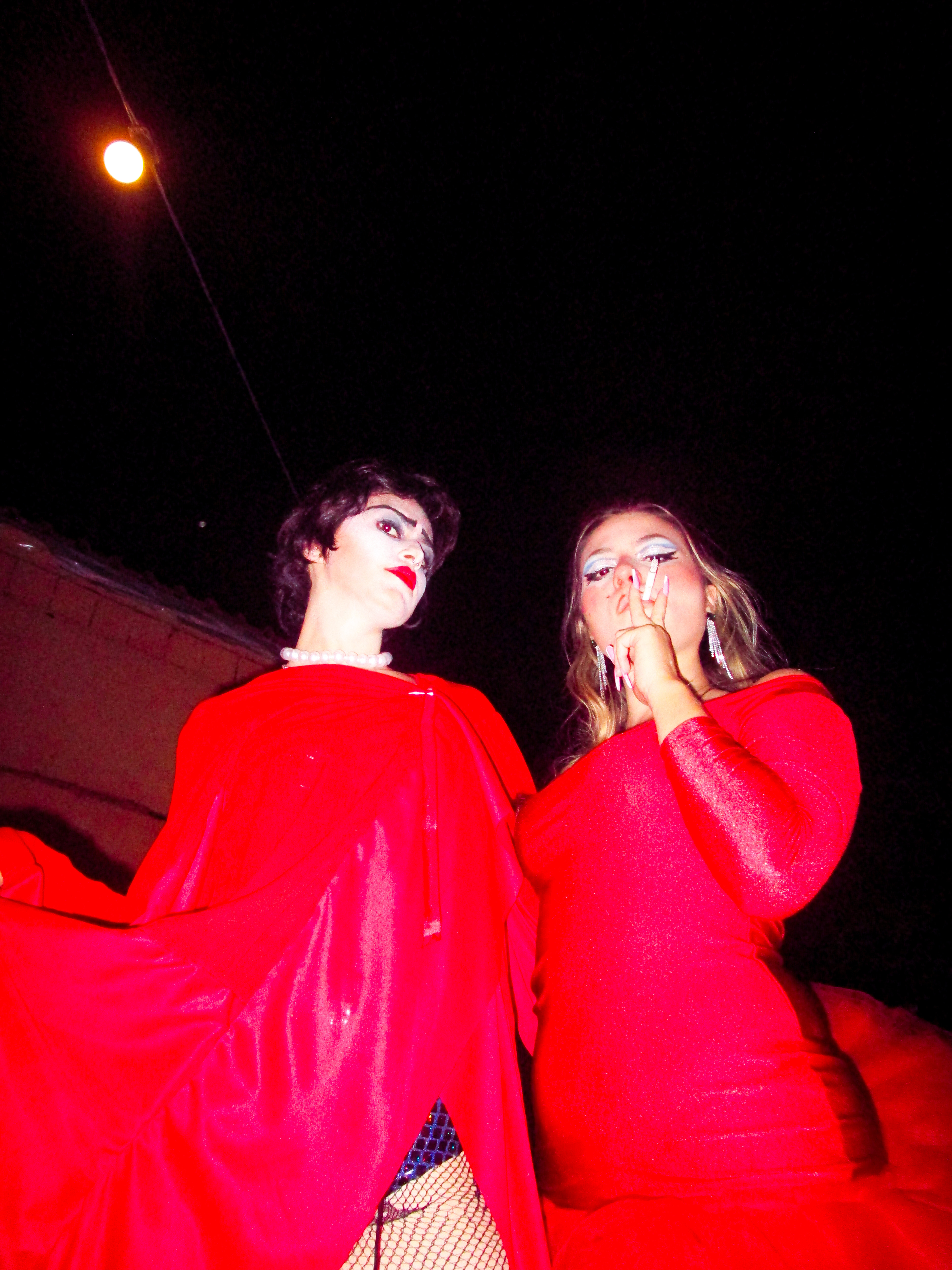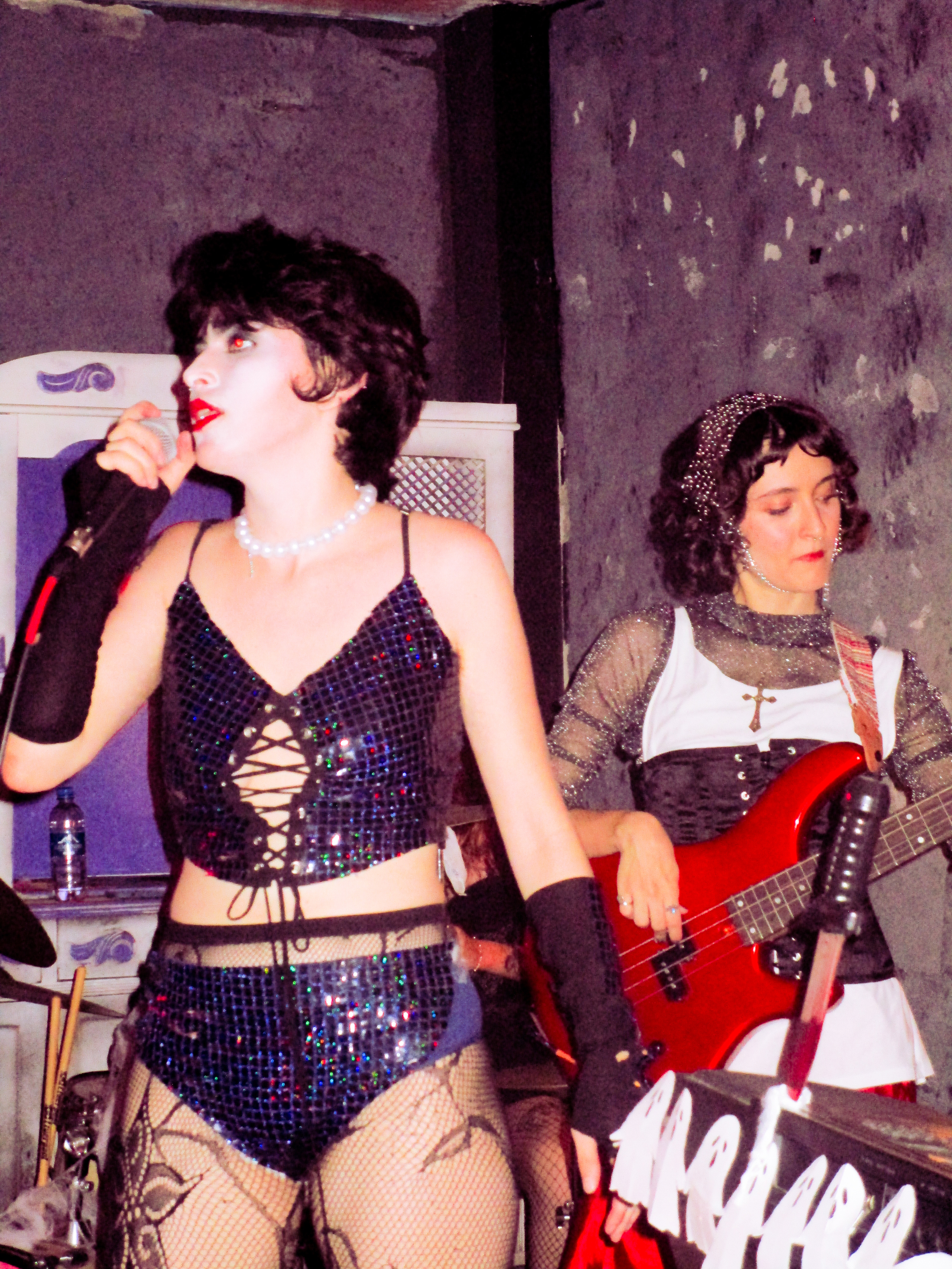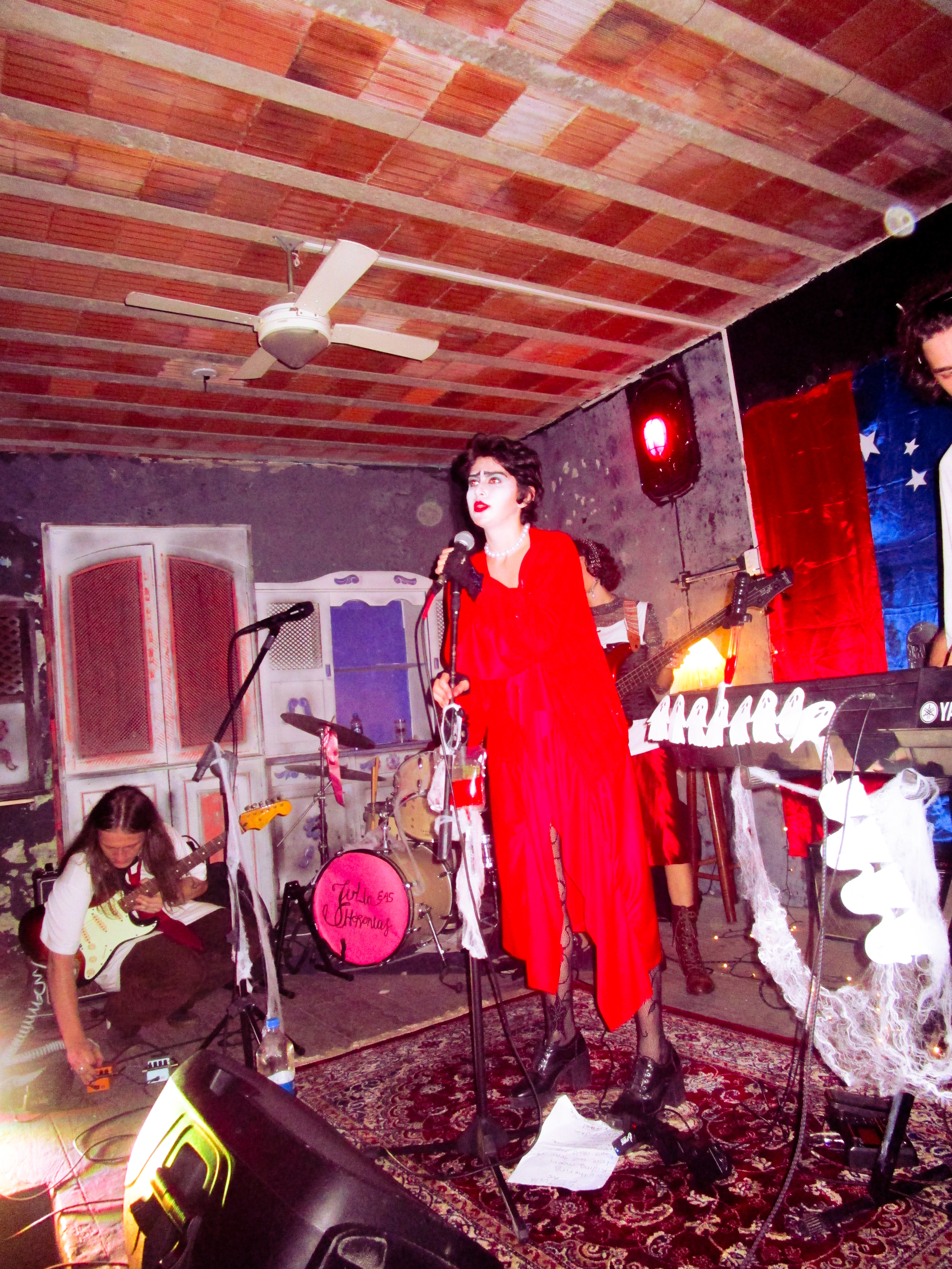 ID da fantasia: meu look foi um 2 em 1 que usei pra me apresentar com a minha banda julia e as choronas. a gente fez um festival de halloween e tocamos kate bush no começo então eu quis fazer uma capa vermelha em homenagem ao clipe de wuthering heights, e no meio do show teve um reveal pra minha fantasia de dr. frank n furter, ficou mais pra siouxsie, mas tudo bem porque tambem tocamos spellbound hahaha