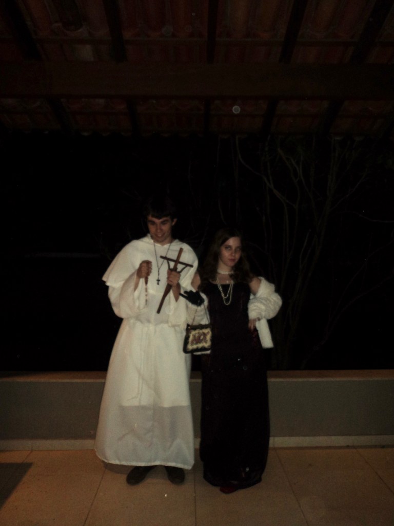 ID da fantasia: a roupa foi feita pela minha namorada, os colares emprestados pela minha sogra e a cruz foi presente da minha tia-avó