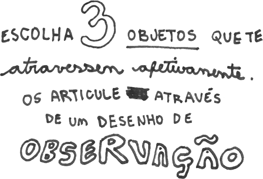 “escolha 3 objetos que te 𝒶𝓉𝓇𝒶𝓋ℯ𝓈𝓈𝒶𝓂 𝒶𝒻ℯ𝓉𝒾𝓋𝒶𝓂ℯ𝓃𝓉ℯ, os articule através de um desenho de observação.”