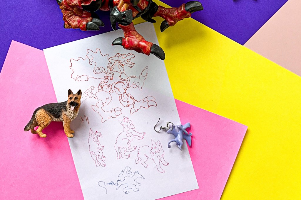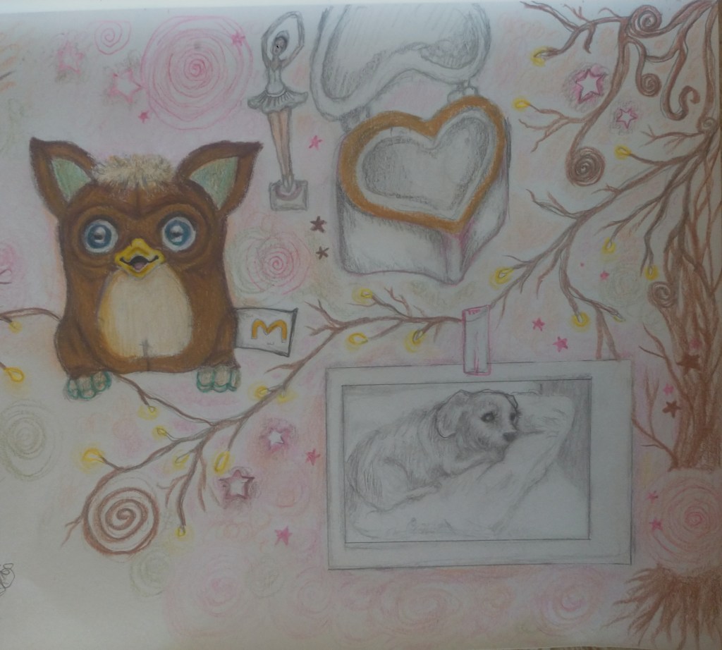 objetos escolhidos: pelúcia cachorro cabeçudo, lagarta littlest pet shop, embalagem de um finado tamagochi.