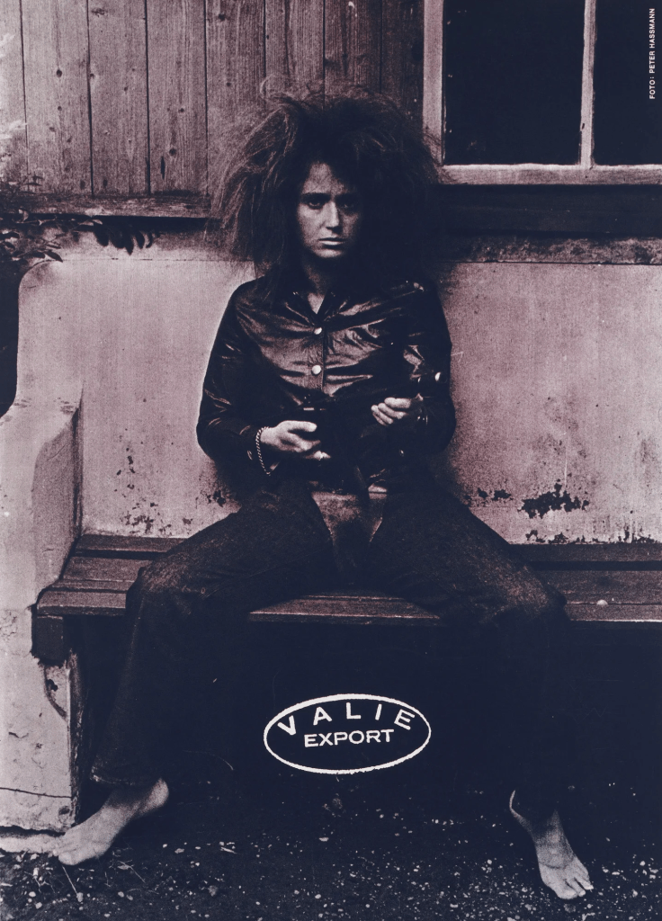 e como não falar de VALIE EXPORT? que com seu nome artístico chamativo, assim como suas perfomances, voltadas sobretudo para o viés feminista, buscou nunca referenciar os sobrenomes do seu pai e do seu marido, e assim, trazer sua própria identidade no meio das artes vienenses, que eram totalmente atreladas ao acionismo e o fazer artístico de homens. em “action pants: genital panic” (1969), que se constituiu em uma série de seis cartazes iguais, nos quais a artista aparece segurando uma metralhadora e usando uma vestimenta que permitia revelar sua genitália. VALIE, olhava então como se fosse disparar a qualquer momento, expondo assim, por meio de seu ato performático uma simbologia lúdica da desconstrução dos arquétipos da mulher, algo extremamente emblemático para o contexto cultural, principalmente da época.