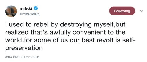- essa é uma lição que eu ainda estou tentando absorver: o mundo é muito maior do que parece. é difícil manter a calma com o nosso planeta sendo dominado por um avanço brutal da crueldade, genocídio, fascismo, imperialismo, pobreza, desastres naturais, doenças, acidentes, tragédias em escalas universais e pessoais. mas é nesse mesmo mundo que também moram as pessoas que você ama, os lugares que você ama, os momentos bons que você valoriza aconteceram aqui também… vale tentar se agarrar a essas alegrias e ternuras para que não seja uma vivência mergulhada em observar tudo que acontece de ruim no momento.