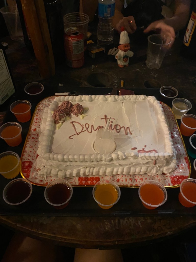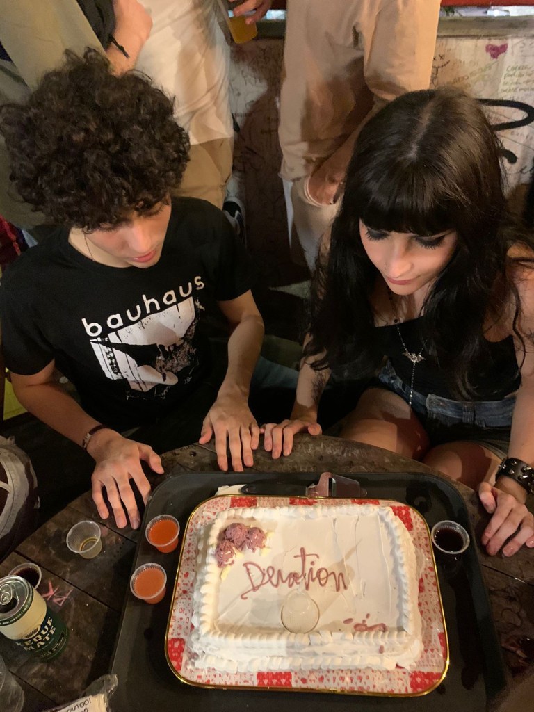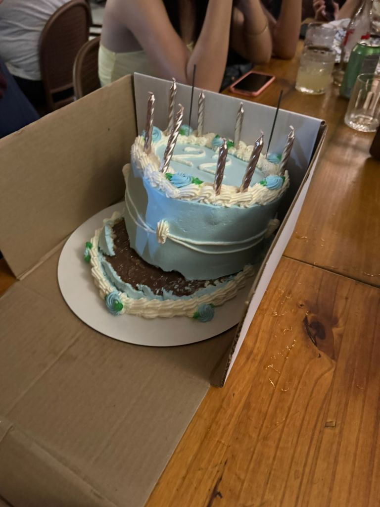 livia, @liviahotwheels esse bolo é muito especial pra mim porque foi o bolo que minha melhor amiga raquel fez (como surpresa) no meu aniversário de 21 anos!! foi muito fofo porque eu tava meio desanimada mas decidi comemorar mesmo assim num bar. depois de um tempinho la, ela apareceu com esse bolo, que faz referência ao bolo da capa do devotion, do beach house júlia, @_figueirono meu aniversário de 20 anos eu e minhas amigas fizemos um sacrifício… nós matamos a laura palmer…e depois comemos pedacinhos dela… gabriela, @gabrielamxlloesse ano fiz aniversário e comemorei com um bolo da charli xcx com os minions joana melão, @altjoana esse foi o bolo que o meu melhor amigo fez para meu aniversário de 21 aninhos. Saiu um pouco diferente do que ele tinha idealizado … mas nos rendeu muitas risadas. o sabor era de limão e estava muito gostoso na verdade :p obs.: “maria beatriz” é o que ele tentou escrever com glacê (e esse não é o meu nome) meus amigos da faculdade encomendaram ele em são paulo enquanto nós estávamos em uma visita técnica sobre arquitetura neocolonial no caminho do mar lá em cubatão, foi uma visita suuuuper cansativa e além disso deu vários problemas na entrega do bolo, mas no fim eles me surpreenderam com essa cabeça do sonic no shopping do metrô itaquera quando a gente chegou a cobertura tinha um gosto extremamente doce, a massa era de chocolate com um recheio também de chocolate meio enjoativo, mas até esses detalhes pareciam se encaixar perfeitamente, como se fosse parte do que fizesse ele especial e… sonic. kaiq, @blacula.ogo primeiro foi feito pela minha tia, ela improvisou muuuito ja que nunca cozinhou mt bem, mas cumpriu o que prometeu ~ um bolo de joaninha (com direito a docinhos escondidos na grama)o segundo teve tema do meu filme favorito: coraline a festa foi a fantasia e eu fiz jus a dona do bolo usando capa de chuva o tempo inteiro yasmim, @i4ryukbolo que fiz ano passado pro aniversário de 8 anos do meu gatinho tutu emanuela, @esldd
