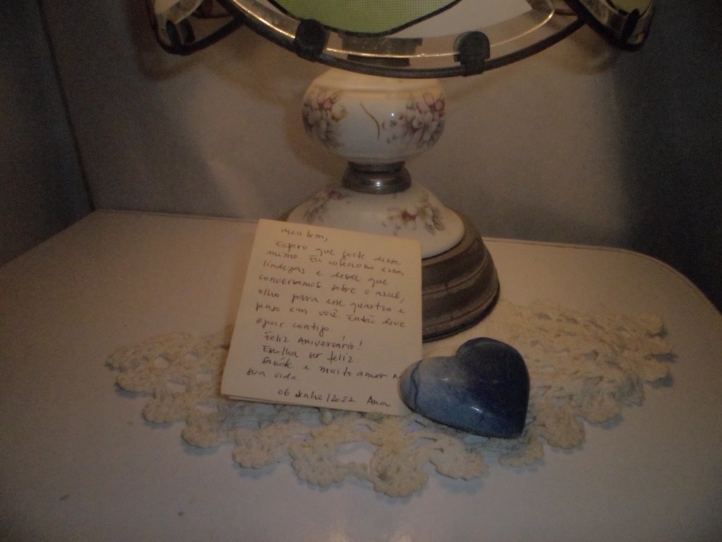 o presente mais especial que eu já ganhei na vida foi esse caderninho. ganhei da minha melhor amiga antes dela ir pra outro continente e cortarmos contato, ela que personalizou com todo carinho. até hoje eu me recuso a usar última pagina porque nada parece suficientemente tão especial pra ser o final desse caderno. acho que ele vai ficar inacabado pra vida toda não tenho coragem de por o ultimo ponto final. marina, @mari_luvlys2cartões de aniversário da minha vó. não é de longe o melhor presente que já ganhei, mas é o que eu guardo com o mais absoluto carinho. o conteúdo nos cartões nunca me importou, o que eu sempre amei é sua assinatura em sua letra trêmula, o esforço em escrever só para assinar o cartãozinho.. ❤ juliaquartzo azul que recebi da minha professora de história da arte no nosso último dia de aula. andressa, @dressasblogGanhei num dos aniversários mais melancólicos que já tive, em dezembro de 2023, de um mutual lovebomber do Instagram que depois se tornou um bom amigo. Chegou algum tempinho antes da data (4/12); pediu que eu esperasse pra desempacotar e descobrir o que era. Mas conforme fui me abrindo sobre acontecimentos recentes, e ele percebeu o quão triste e derrotado estava, deu permissão, levantou o embargo. Fiquei desacreditado. É uma coleção raríssima de todos os álbuns em CD do meu grupo favorito, This Mortal Coil. E ainda veio com outra pequena coletânea junto, repleta de outros favoritos como Elliott Smith, Galaxie500, Nina Simone, etc. Acho que, não só pelo presente incrível em si, mas pela luz que trouxe num período difícil, sempre lembrarei mais dele do que de quase qualquer outro. pedro minet, @pedrominetminha melhor amiga me tirou no amigo secreto e simplesmente reproduziu os nossos looks em forma de bichinhos, com brinco, colar e até o fundo da sala da nossa casa que dividimos no fundo – lindo, especial, especificamente pessoal! a definição de “us in another universe”. @marinaelisei_esse foi o presente mais especial que eu já recebi, no dia do meu aniversário de 21 minha namorada da época me deu um hot wheels do snoopy, o qual eu tinha comentado com ela que vi pra vender numa loja de beira de estrada numa viagem com o meu pai uns meses antes do meu aniversário, mas que eu nunca mais tinha visto pra vender em loja física. (ela me deu um kit de presentes que foram especiais também mas esse se destacou porque eu não imaginava que ela lembraria disso ou que faria algo sobre, porque meus presentes de aniversário costumam ser coisas que eu não gosto tanto assim que eu ganho dos meus pais). @venusagarota meu aniversário foi ontem e eu amei todos os presentes que eu ganhei mas eu tava lembrando do presente mais especial de todos que ganhei quando tinha 5 anos. meus pais me presentearam com a diva chamada Princesa que se tornou minha alma gêmea. ela faleceu a uns anos atrás mas sinto falta todos os dias. foto do shooting que eu fiz com ela tema oncinha quando eu tinha uns 8 anos com uma camera digital da minha mãe marcela moraes, @marcelafm_ o presente mais especial que já ganhei foi a Safira, minha cachorrinha. ela apareceu e, sem muito esforço, virou parte de tudo. carinhosa, engraçada e sempre por perto, nos momentos bons e ruins. marisa araújo, @wcatlinks no meu aniversário de 15 anos, minha amiga sofia me deu uma heart-shaped box com essas coisinhas dentro, pois amávamos hole (e nirvana!). tenho guardado até hoje… acho que o glitter roxo foi por causa da cor do meu cabelo na época. o band-aid ainda está fechadinho :3 jéssica, @je062803