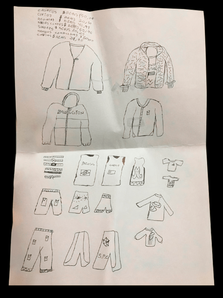 unamourdeplus: evitei trabalhar com moda por muito tempo porque peguei bem a época do streetwear hypebeast e pós-hypebeast. todo mundo queria ter marca (camiseta com nome da marca damn, você é igualzinho o virgil!) e eu achava meio cringe kkkkkkk. eu não via minha verdade nessa forma de conexão com as roupas, sabe? mas minha necessidade real era de um lugar onde eu pudesse colocar todos os meus meios de expressão artística juntos. tentei trabalhar em diversas áreas do design e da arte mas era tudo muito limitante, eu precisava mexer com tudo de uma vez só. isso eu encontrei no projeto da unamour. no começo eu definia como oficina-estúdio-blog-revista-escritório… hoje em desapeguei desses rótulos mas a energia é a mesma. minha relação com a moda existe desde que eu era muito criança. na época da escola eu nunca conseguia acordar no horário e a única coisa que mudava isso era quando eu tinha algum look diferente pra usar (ou quando ia ter futebol). me energizava muito. naquele tempo eu não pensava tanto sobre isso mas hoje eu vejo como essas expressões são extremamente necessárias, meio como água e oxigênio pra conseguir viver. são coisas que colocam o brilho no olho. e viver sem brilho no olho é uó né… acho que as pessoas invalidam muito o valor da estética, como se fosse algo superficial. esse desenho eu fiz quando eu tinha 6 anos, acho que diz muito!: