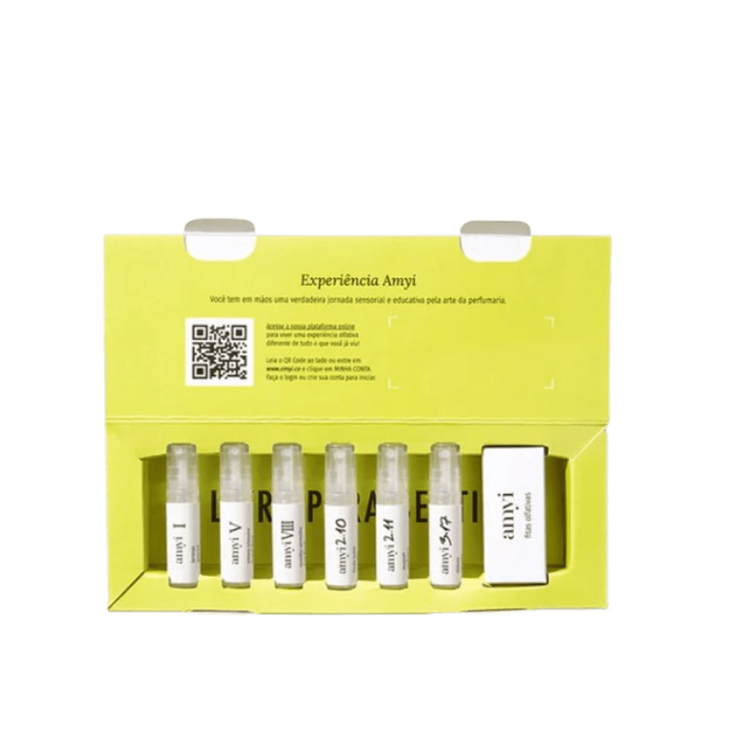 são 6 frasquinhos de amostra que você pode escolher no site + acesso a um guia online para quando for experimentar. uma ideia: escolher o amyi 3.17, o que traz notas de “suor pós-sexo” e rende boas discussões no fragrantica.com.