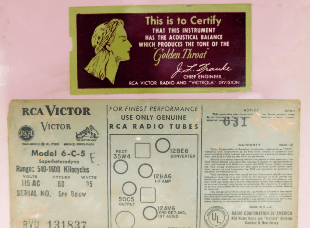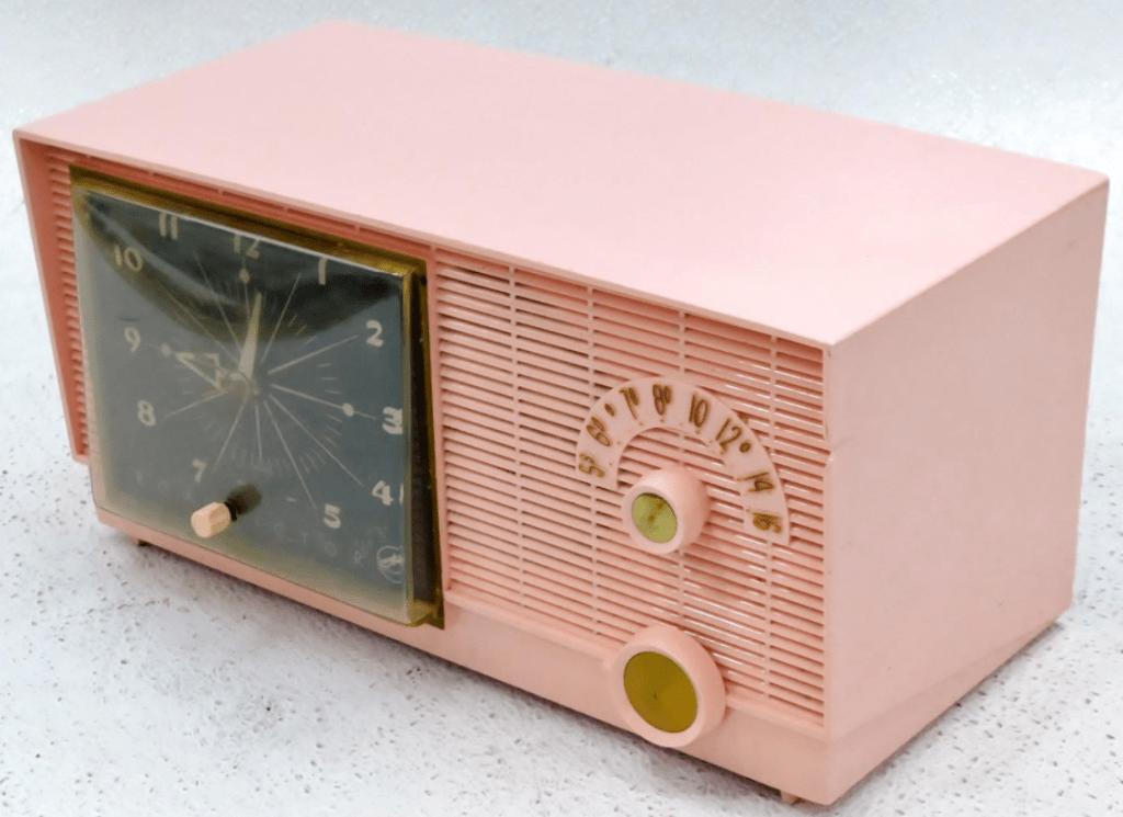 RCA Victor Model 6-C-5 Pink Tabletop Tube Clock Radio w/ Power Cable