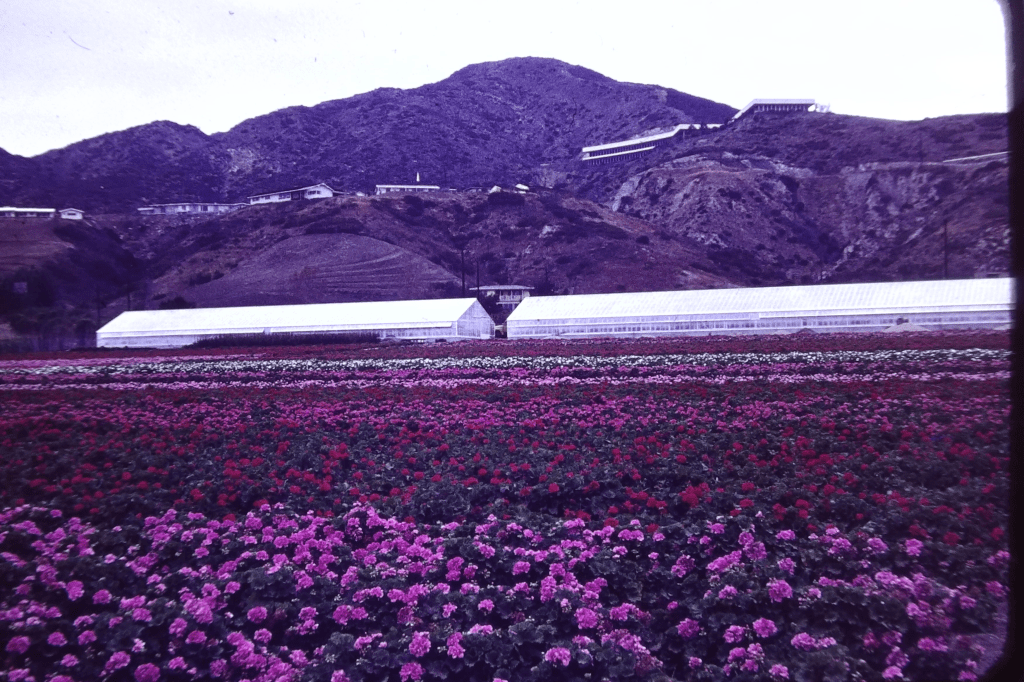 Topics: Geraniums, Malibu, California, vintage, flowers, purple, pink, red, white, flower, greenhouse, greenhouses, house, hills, cranesbills, geranium